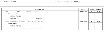 Ces temps de réparations sont déclarés en fonction d'un temps en 1/100e d'heure ainsi que d'un taux horaire variant selon la complexité de la tâche (1, 2, 3)