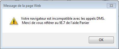 1 – Message d'erreur « Votre navigateur est incompatible avec les appels au DMS ».