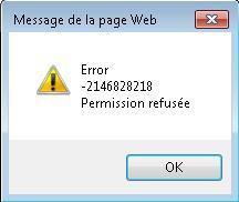 3 – Message d'erreur « Erreur – 21468218 Permission refusée ».